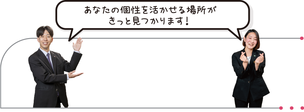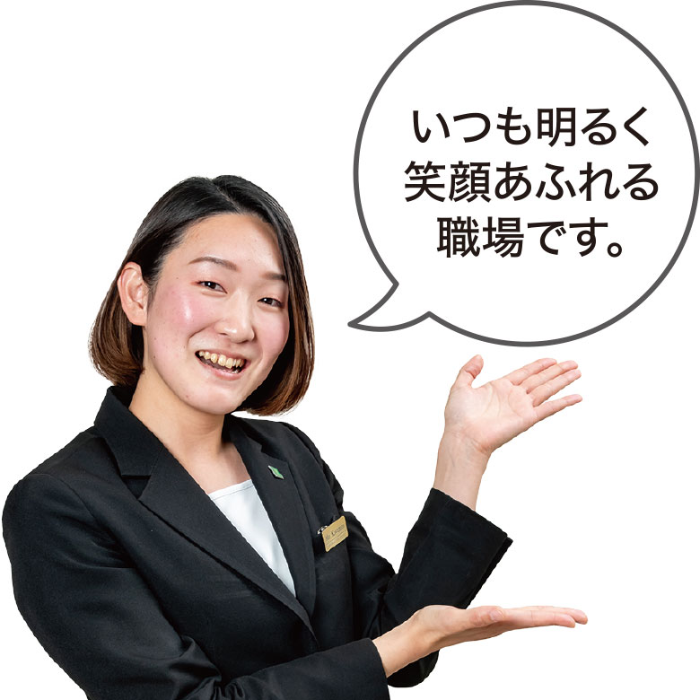 「こんな人たちと一緒に働きたい!」と思える先輩方や仲間と支え合える大好きな職場です。