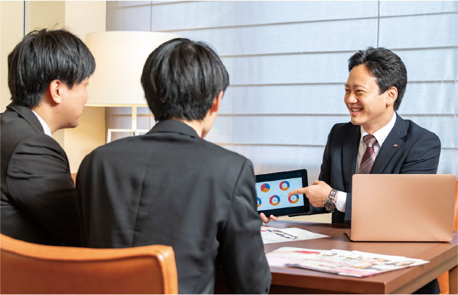 「何をしたいか」よりも「誰と働きたいか」を重視。お客様の信頼をつなぎ、目標を達成する喜びがある。