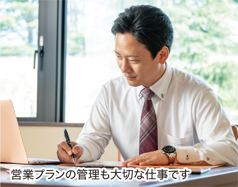 所長になってからはスタッフの営業活動に同行するほか、活動の管理や助言、資料作成など、主にサポート業務を行っています。